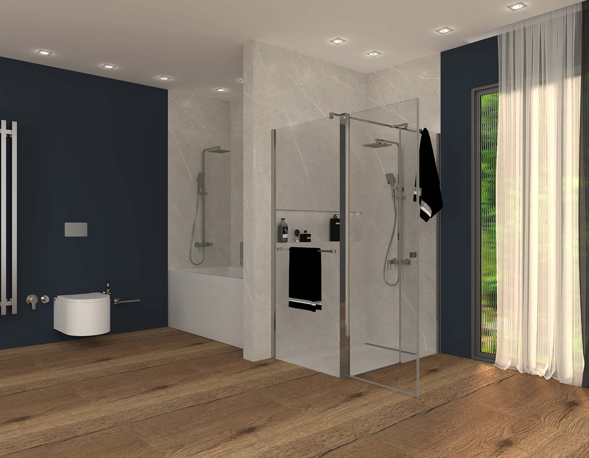 MTA-10015001Montana, düz duvar uygulamalarında vazgeçilmez bir tercih sunar. Geniş duvar aralıklarına özel olarak istenilen ölçülerde uyarlanabilen tasarımıyla banyolara maksimum esneklik kazandırır. Çok yönlü kurulum seçenekleri sayesinde kapı sistemi; içe–dışa çift açılım, yalnızca içe ya da yalnızca dışa açılacak şekilde uygulanabilir. Standart ölçülerin ötesinde kapı genişliği imkânı sunan Montana, geniş alanlarda şık, zarif ve dengeli bir kullanım sağlar. Dinamik ve asansörlü menteşe sistemi, uzun ömürlü performans sunarken aynı zamanda yüksek sızdırmazlık sağlar. Geniş banyolar için kare veya dikdörtgen formda çözümler arayanlar, yan panel ile kombinasyon yaparak duş alanını daha da genişletebilir. Kolay kullanımı ve engelli dostu yapısıyla, Montana hem estetik hem de konforu bir arada sunar..