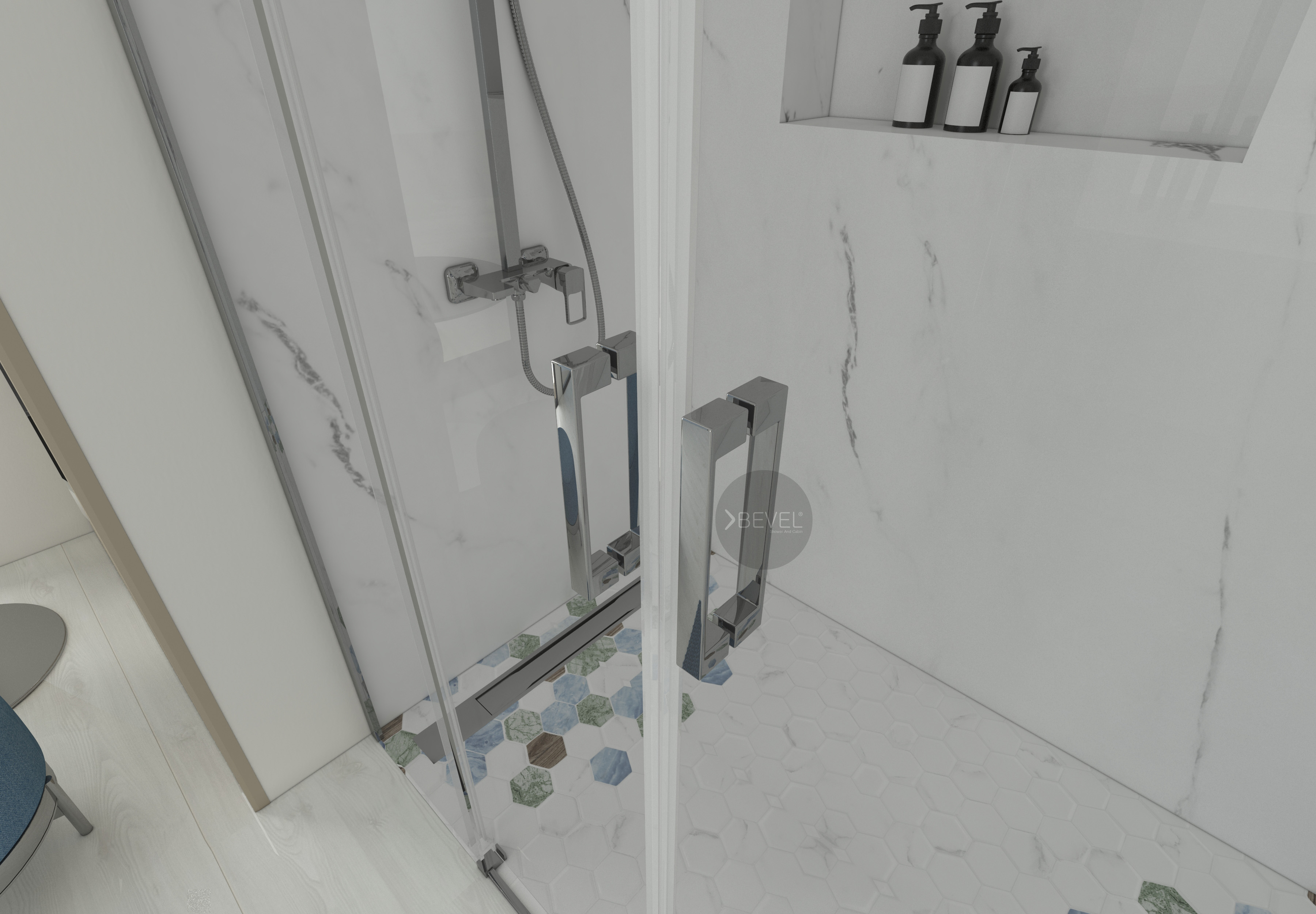 EŞİKSİZ MONTAJ İMKANI Eşikli veya eşiksiz kabinlerde standart olarak duş kabini montajı için gerekli tüm aparatları ürüne eklenmektedir.